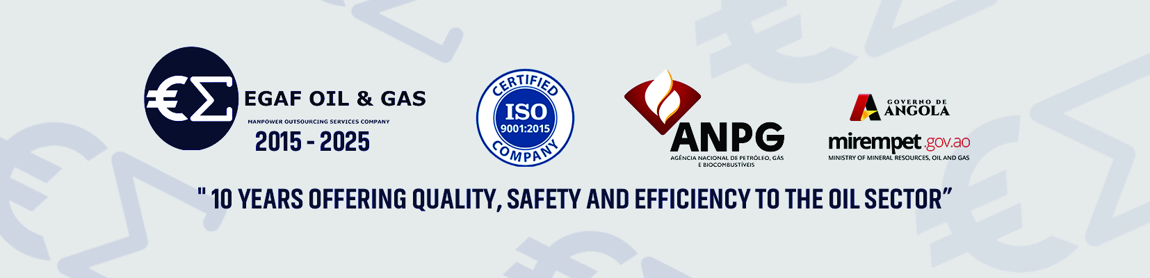 EGAF is a company that provides MANPOWER and Other Support Services to the oil sector, and we have more than 8 years of experience in the oil sector. In 2018 we were certified by the Ministry of Petroleum as providing Petroleum Sector Services, and more recently we obtained the ANPG certificate. We provide qualified and experienced oil and gas workers to help our clients have the best human resources to meet growing international demands.